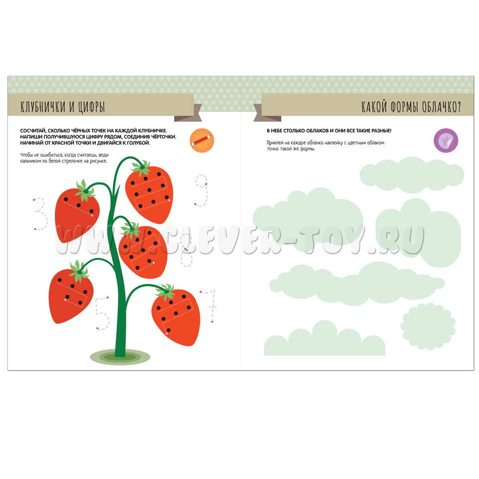 28 листов из плотного картона с заданиями и наклейками.