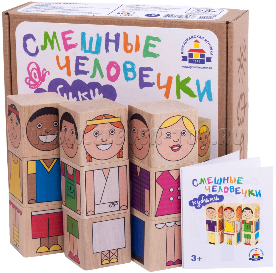 Кубики "Смешные человечки" - это 9 деревянных кубиков, на которых нанесены яркие и забавные изображения человечков: