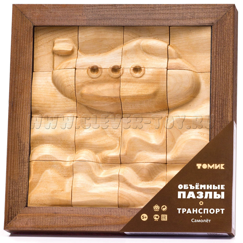 Пазл деревянный объемный "Самолет" (16 деталей)