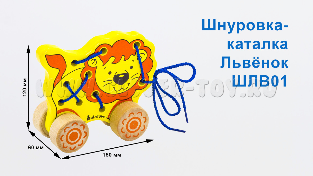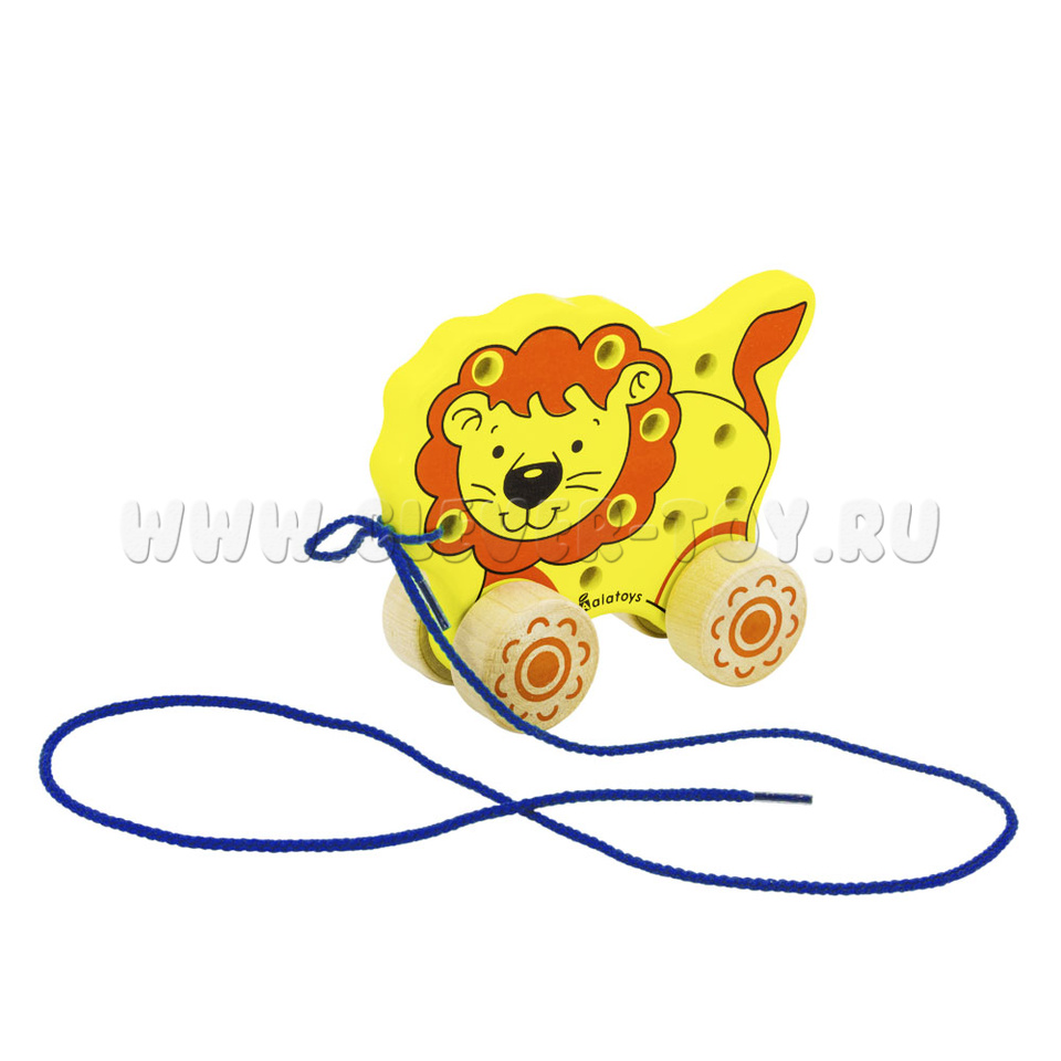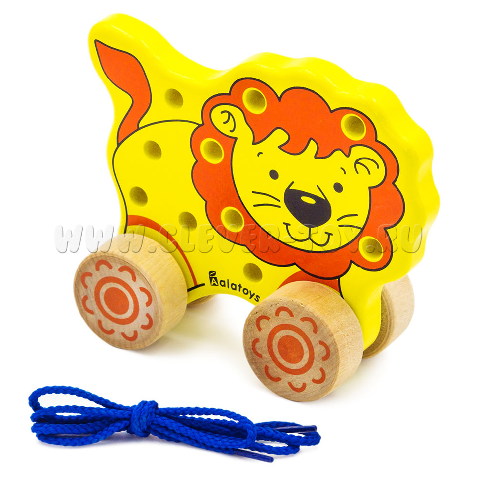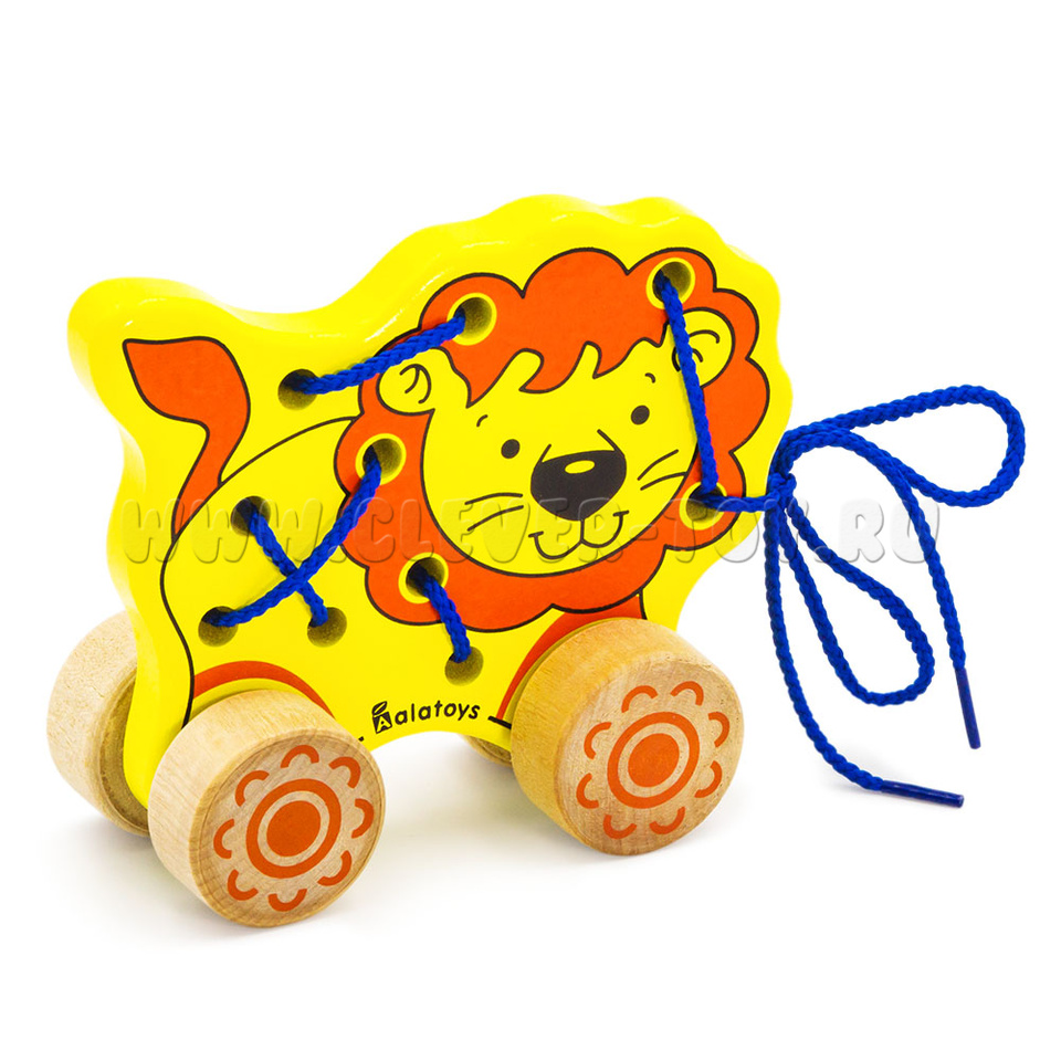 Игрушка выполнена в форме милого львенка, который станет хорошим другом для мальчика или для девочки. "Лев" многофункциональна игрушка потому, что ее можно не только катать, но и развивать непослушные ручки. Огромную пользую, она принесет детям, у которых трудности в речевом развитии, потому, что развивая моторику рук и пальцев, можно параллельно развивать участок коры головного мозга, отвечающий за формирование речи. Если правильно протянуть шнуровку между дырками, то можно сделать из льва – каталку. Купить игрушку "Лев" можно в нашем магазине по привлекательной цене.