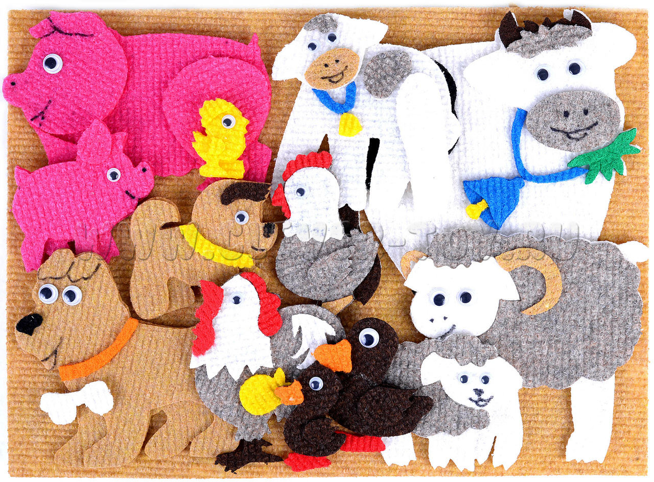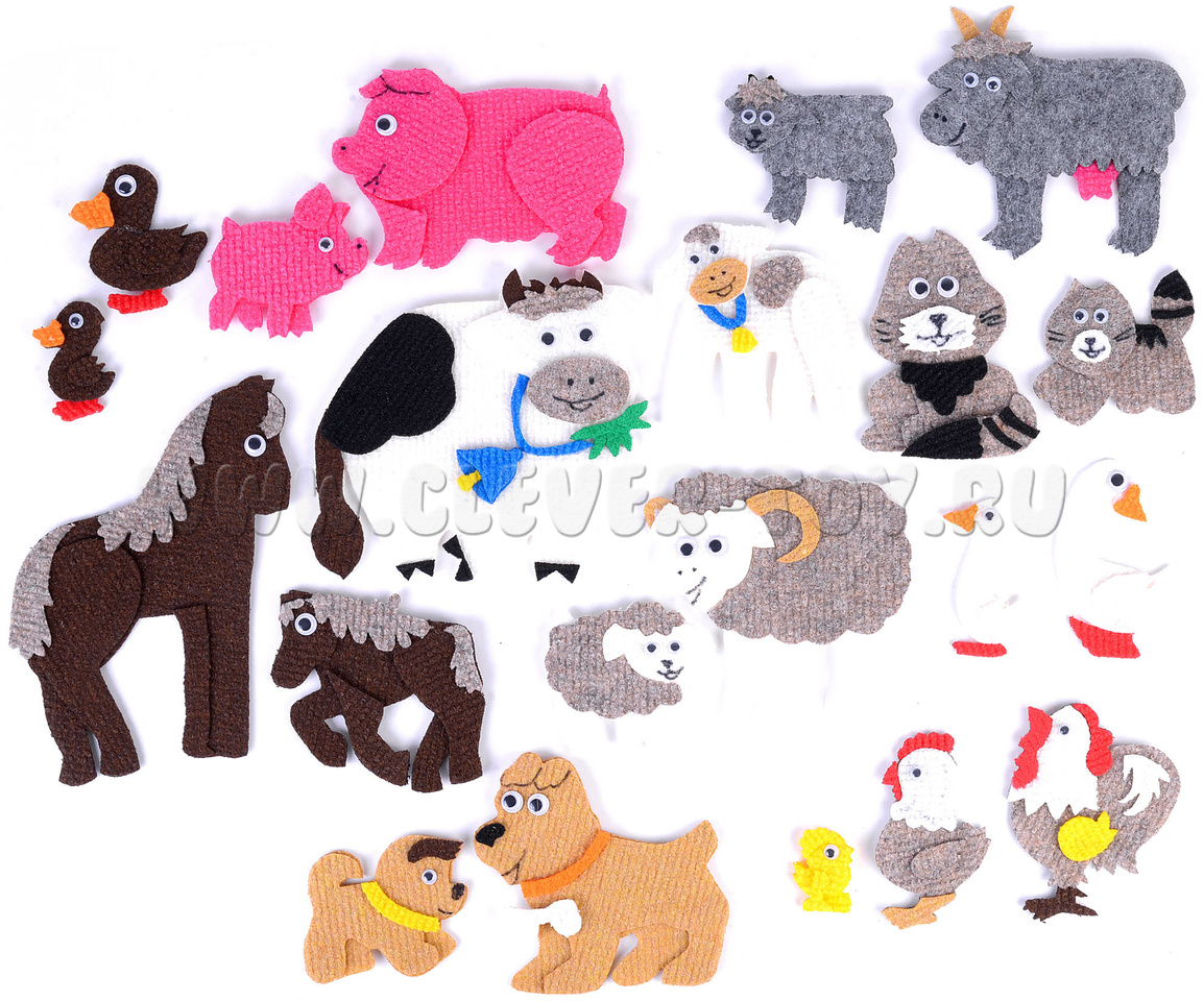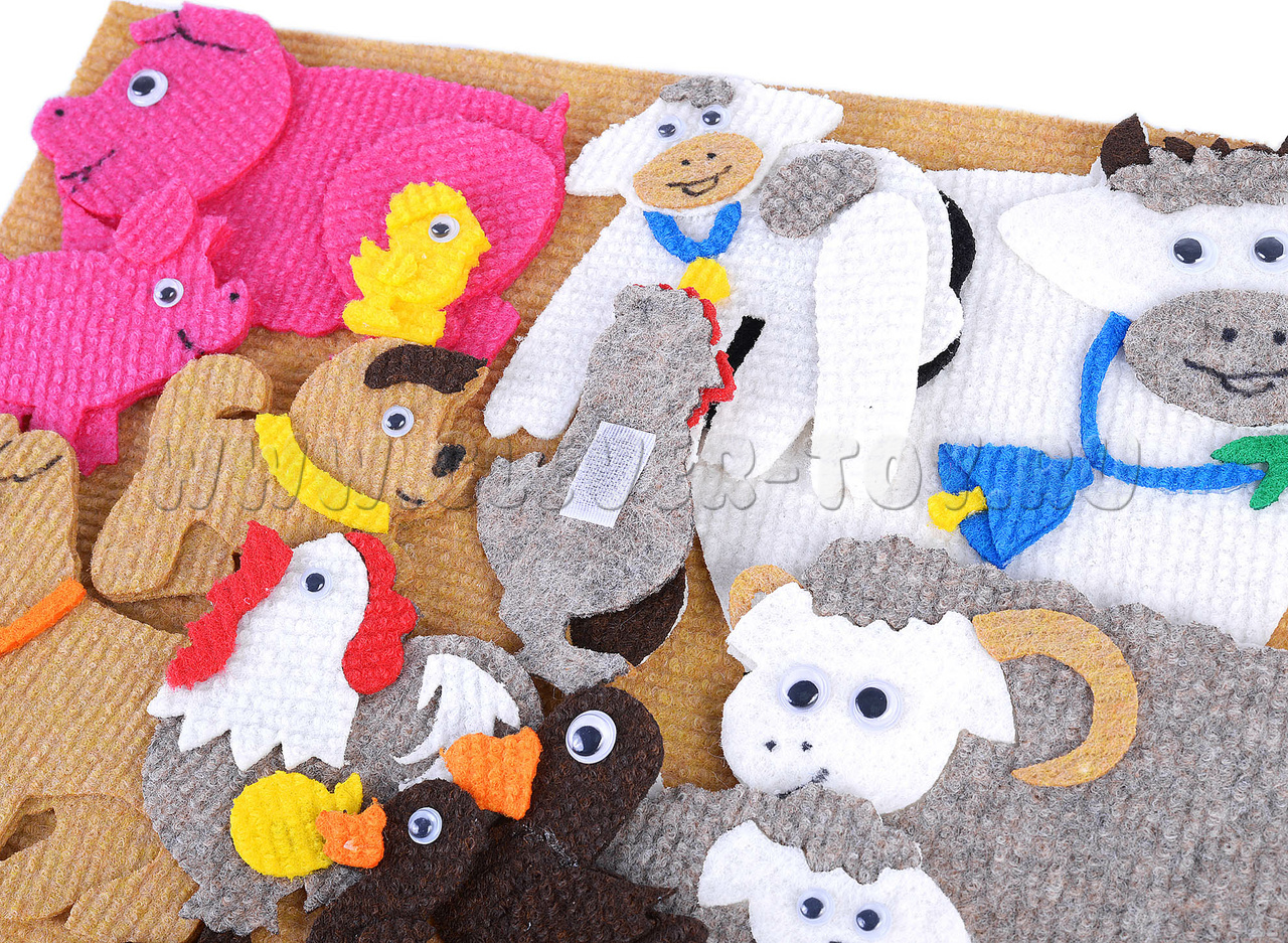 • вместе вы сможете придумать большое количество интересных историй с помощью ярких фигурок животных из ковролина,