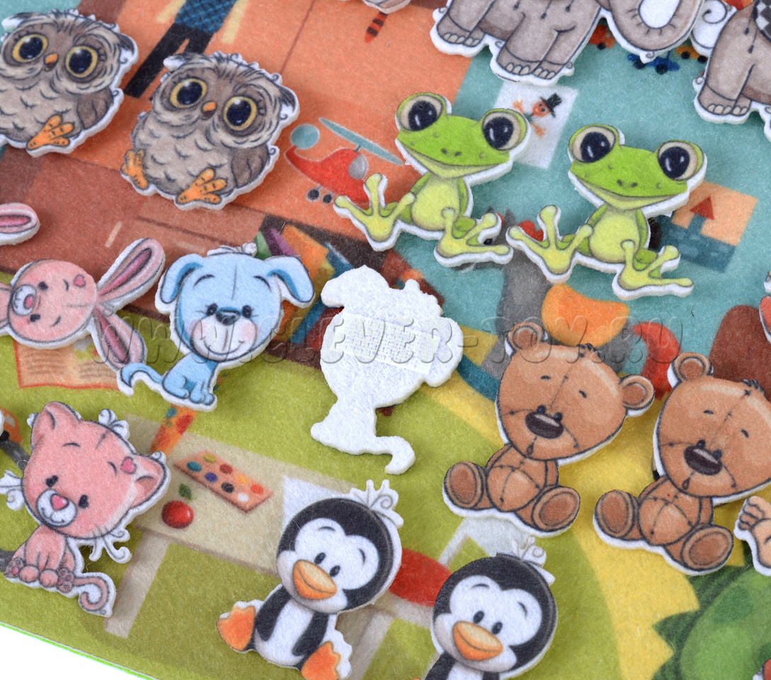 Дети с удовольствием играют с фигурками на липучках, которые можно использовать неограниченное число раз, можно легко перемещать по игровому полю, прикреплять их без особых усилий.
