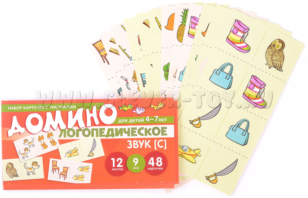 Набор карточек с рисунками. Домино логопедическое. Звук [С]. Для детей 4-7 лет (922507)