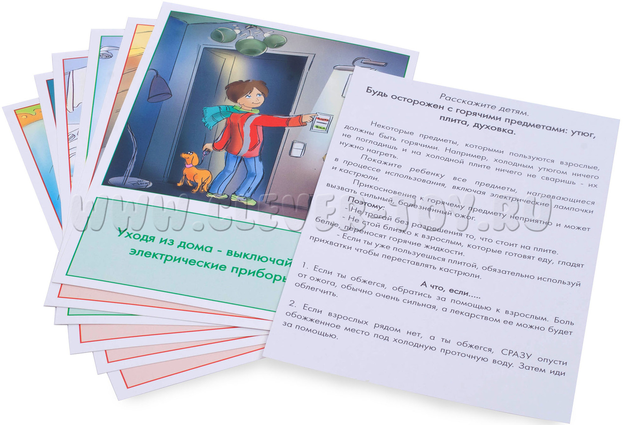 Наглядные карточки от ООО "Маленький гений" познакомят ребёнка с правилами безопасного поведения дома: