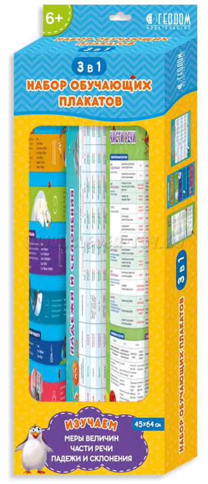Набор обучающих плакатов: Меры величин + Части речи + Падежи и склонения (45х64см)