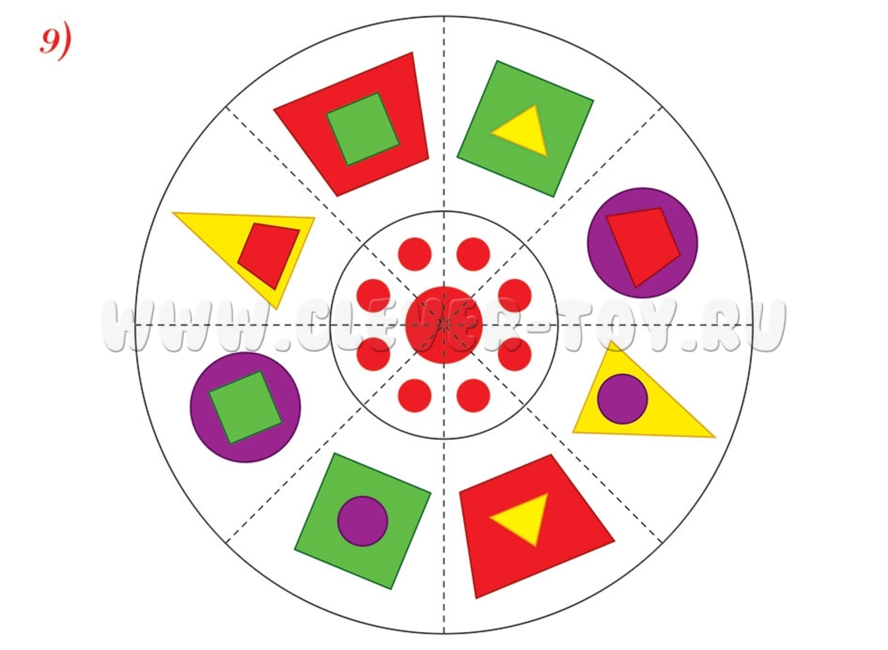 В наборе удобная папка для хранения и 12 карт формата А4, каждая карта – отдельная головоломка со своим уникальным заданием. Перед началом игры родителю или педагогу необходимо вырезать 12 кругов и разрезать их по пунктирным линиям на секторы. Головоломка считается решенной, если круг собран правильно.