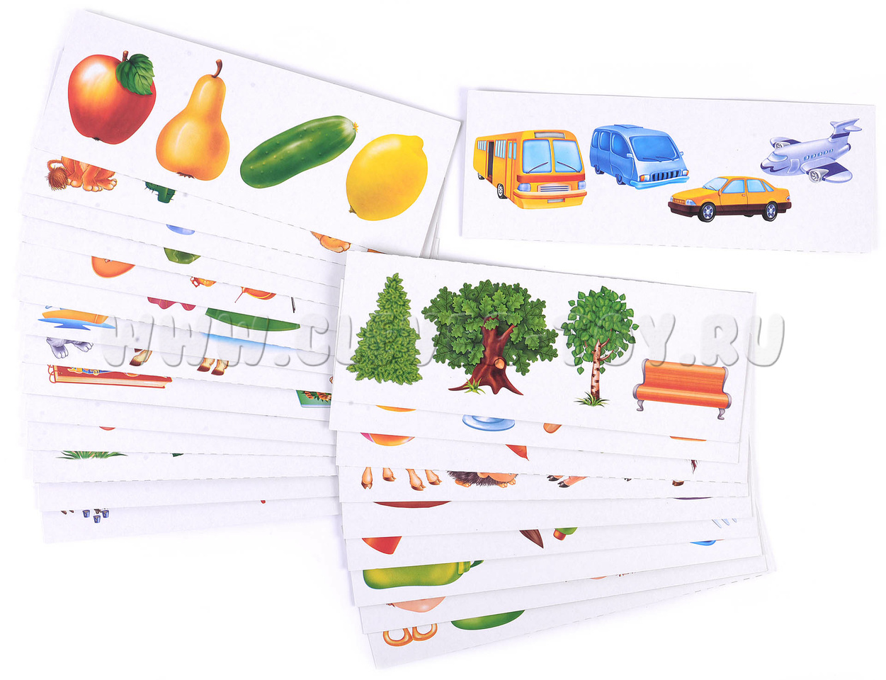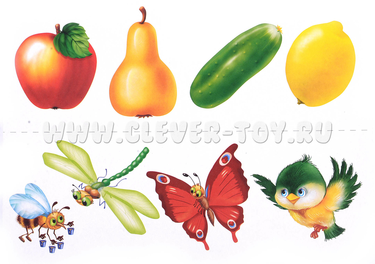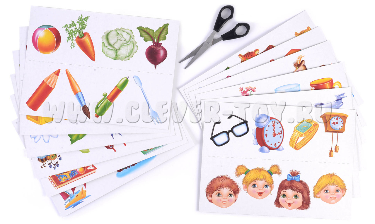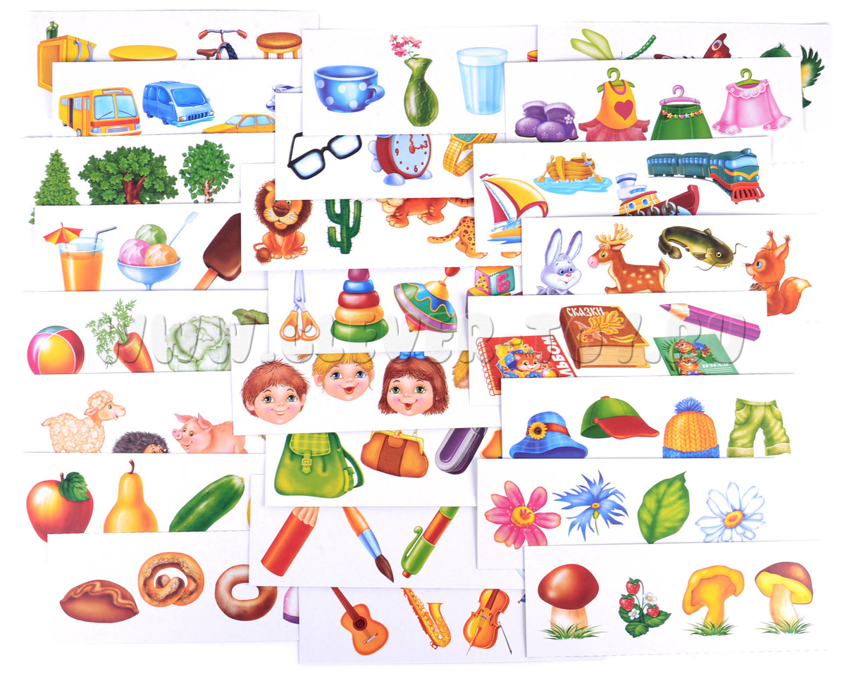 Изображения на карточках содержат очевидные различия между предметами.