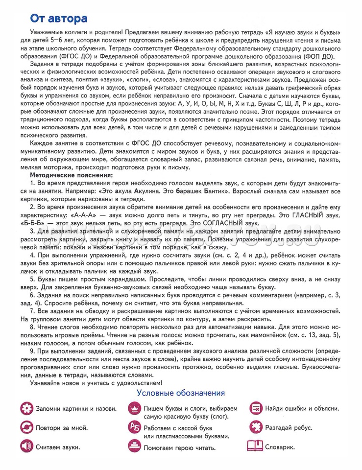 Тетрадь поможет подготовить ребёнка к школе и предупредить нарушения чтения и письма на этапе школьного обучения. Тетрадь соответствует ФГОС ДО и ФОП ДО.