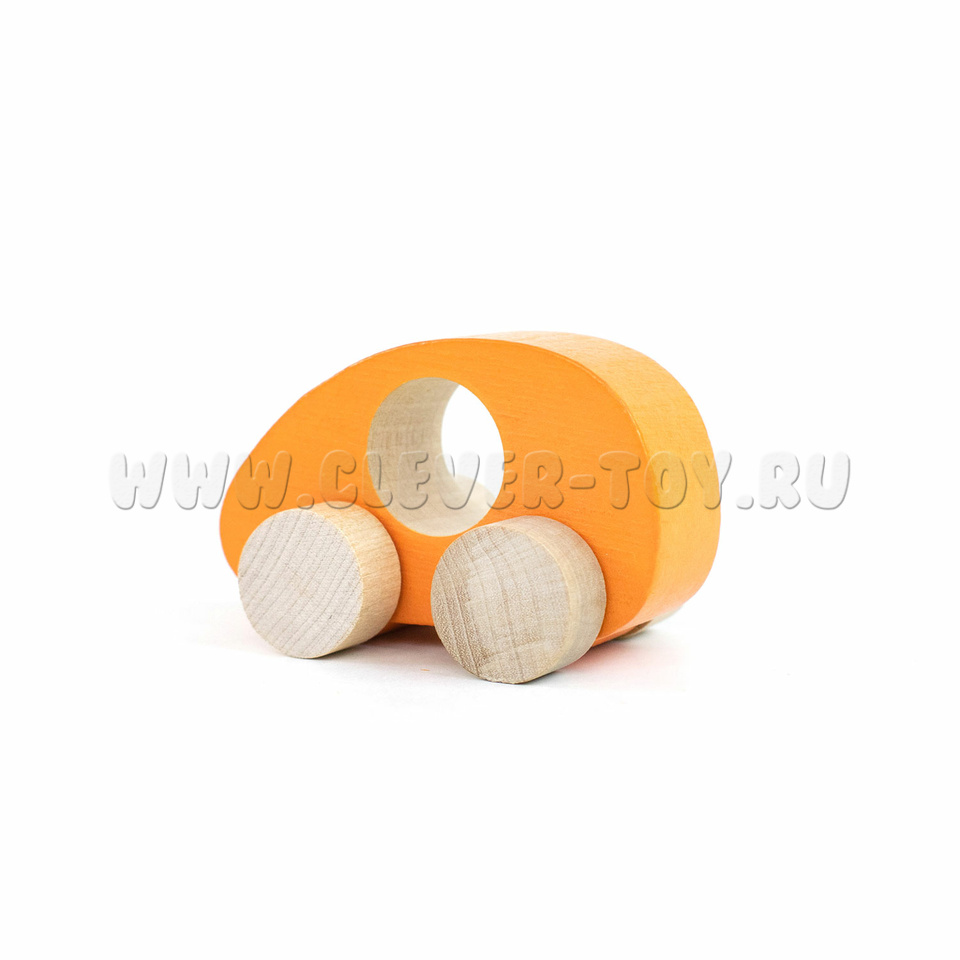 Деревянная машинка-каталка "Томик" оранжевая для самых маленьких ребят, с отверстием для пальчиков.