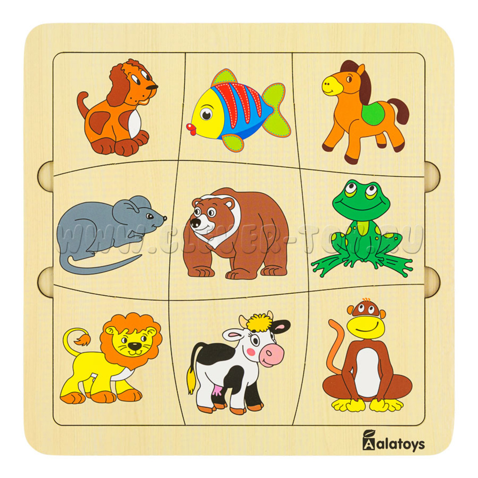 Пазл-ассоциации "Животные" (21*21 см, 9 карточек, основание)