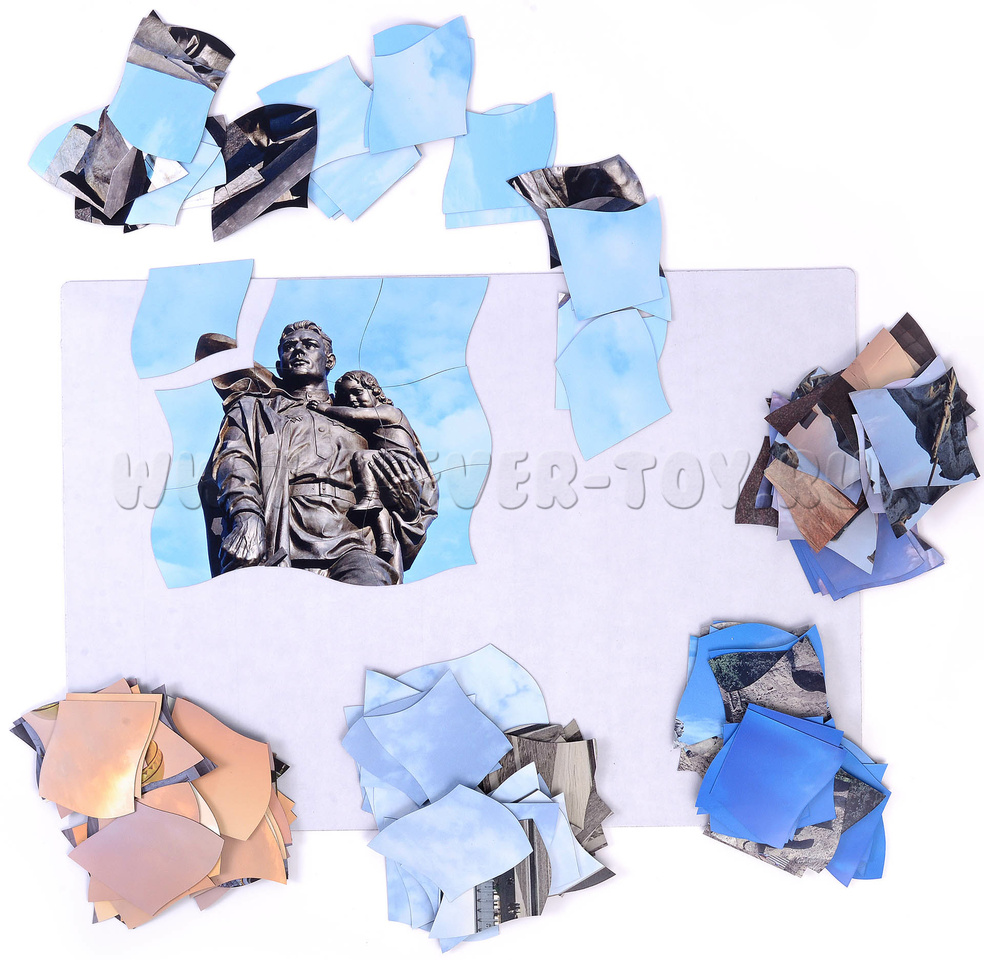 С помощью пазлов можно украсить школьную доску ко Дню Победы 9 мая. Пособие подходит для старшей группы детского сада и знакомит детей с памятниками Великой Отечественной войны.