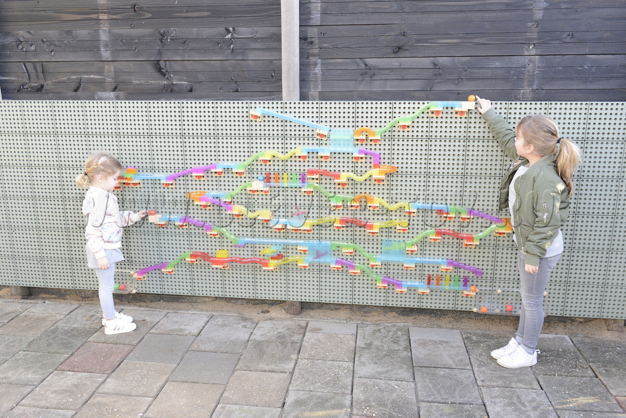Кинетический трек с шариками представляет собой многофункциональное дополнение к образовательным STEM-стенам любого типа – как стационарным, так и мобильным конструкциям.